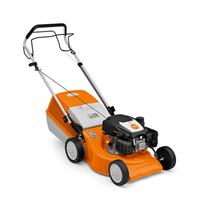 Tosaerba compatto con trazione a 1 marcia. Maneggevole tosaerba a benzina con larghezza di taglio da 46 cm per superfici di dimensioni medio-grandi e regolazione centralizzata altezza di taglio. Cesto di raccolta erba da 55 litri incluso. Tipo motore: STIHL EVC 200.2